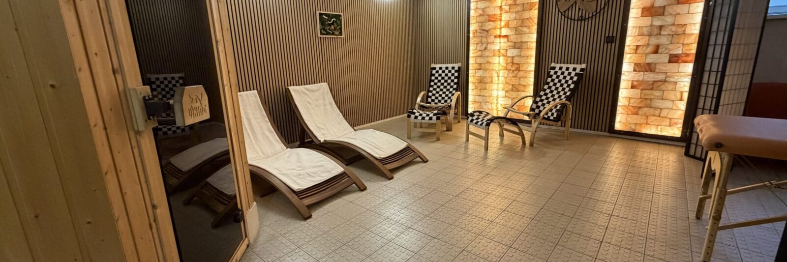 Regenerácia v relaxačnej miestnosti so soľnými oknami.